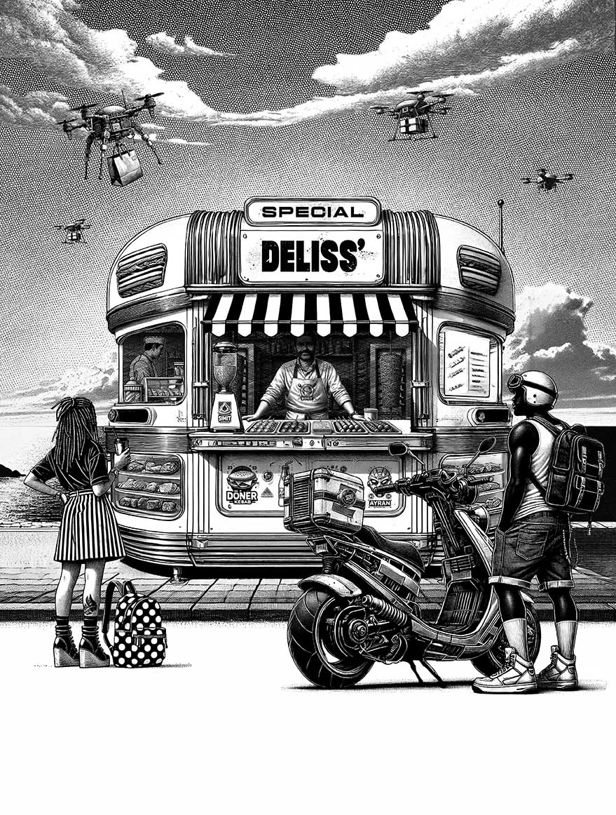 Trois illustrations mêlant IA, dessin et montage Photoshop