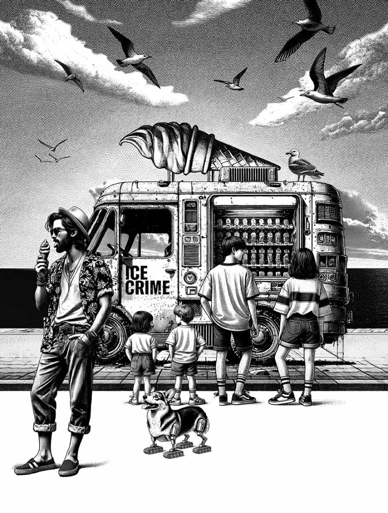 Trois illustrations mêlant IA, dessin et montage Photoshop