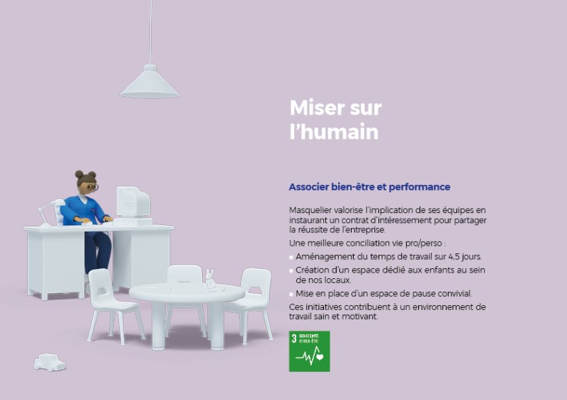 Création d’une mascotte, d’une plaquette et d’un film présentant les actions RSE de Masquelier. Mascotte et film réalisés par l’ami Tomy Durand