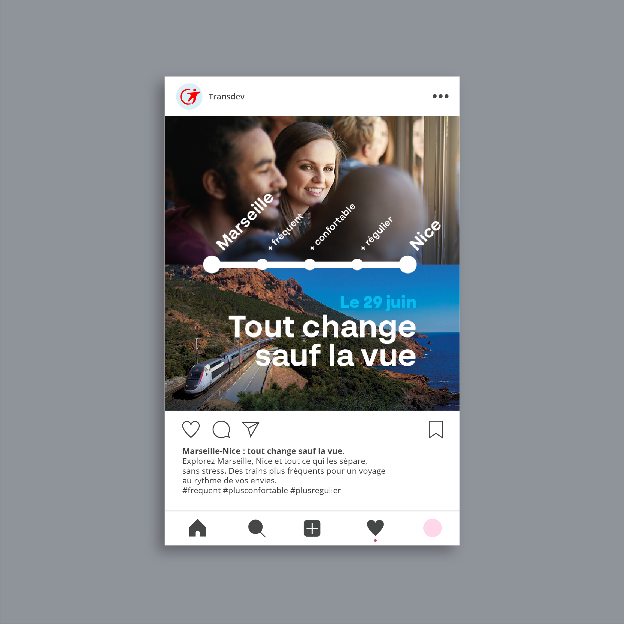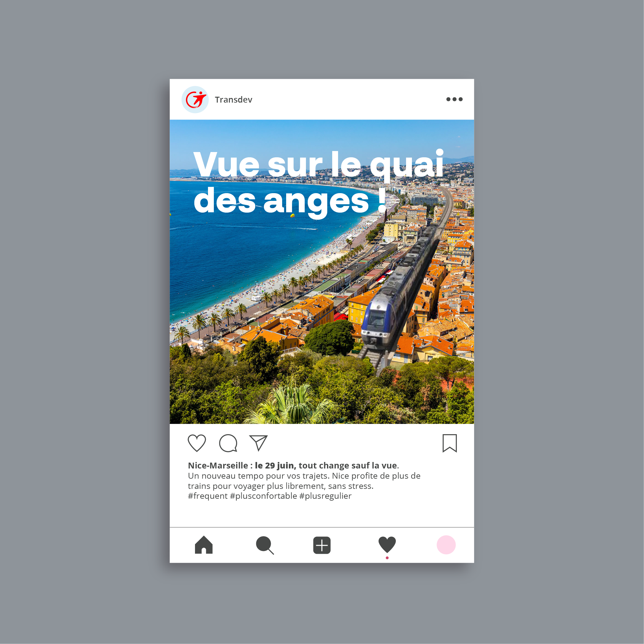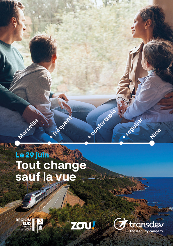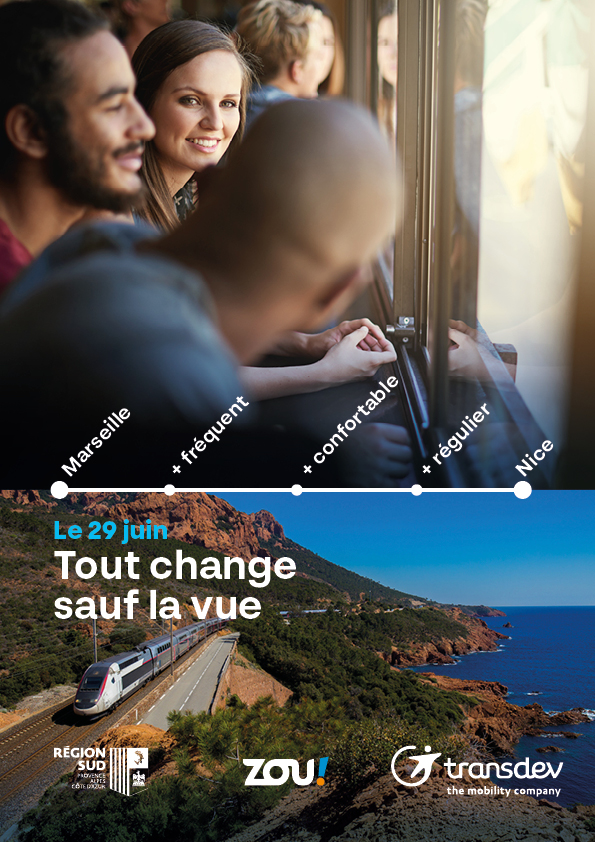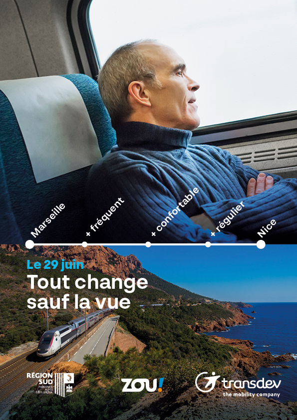 Création d’un principe de campagne pour l’arrivée de Transdev sur la ligne TER Marseille/Nice. Création du principe de campagne, rédaction de l’accroche. Réalisée pour l’agence Euphoriques